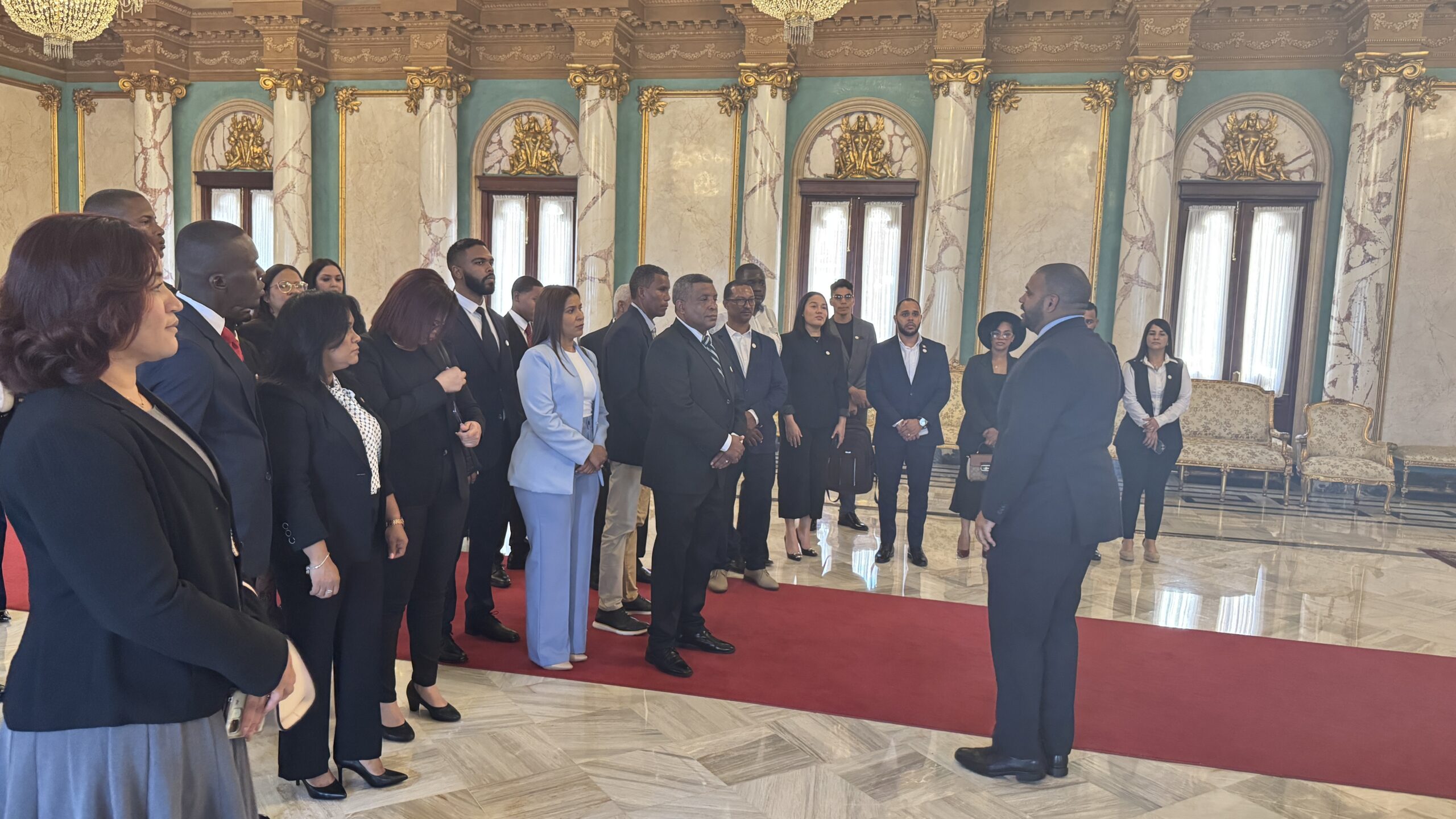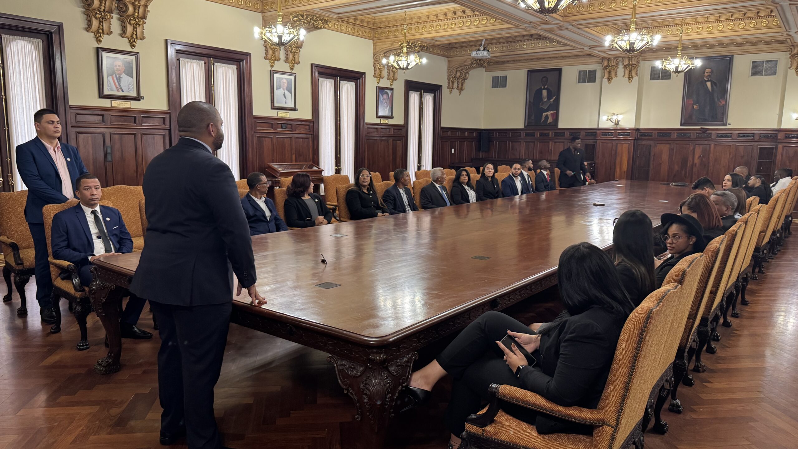 Durante la visita, los estudiantes fueron recibidos por el equipo de Edecanes del Palacio, quienes ofrecieron una charla sobre las fases de construcción de la infraestructura de gobierno, así como los retos y oportunidades que enfrenta la República Dominicana en el contexto internacional. Los alumnos tuvieron la oportunidad de hacer preguntas y dialogar sobre temas relevantes, así como también conocer los espacios emblemáticos de la sede principal del Poder Ejecutivo Nacional, entre ellos: Salón de Embajadores, Salón las Cariátides, Salón Verde y el Salón donde se realiza en Consejo de Gobierno.